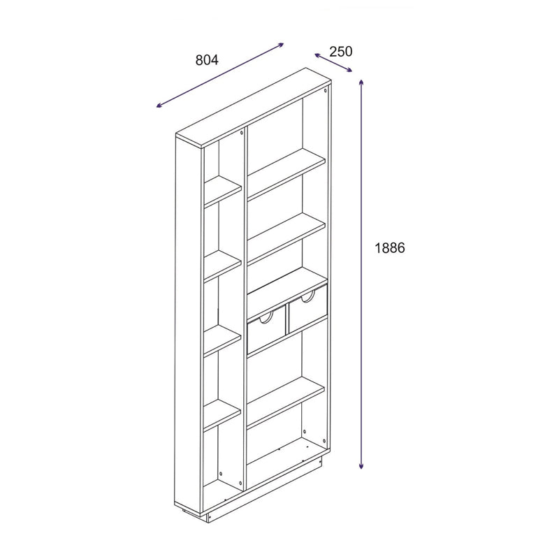 Bookcase with drawers Dakin pakoworld in oak shade 80x25x190cm