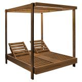 Двyместен шезлонг с навес от масивно дърво