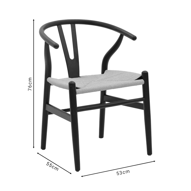 Wishbone chair pakoworld black beech wood-seat with rope in natural shade 53x55x76cm