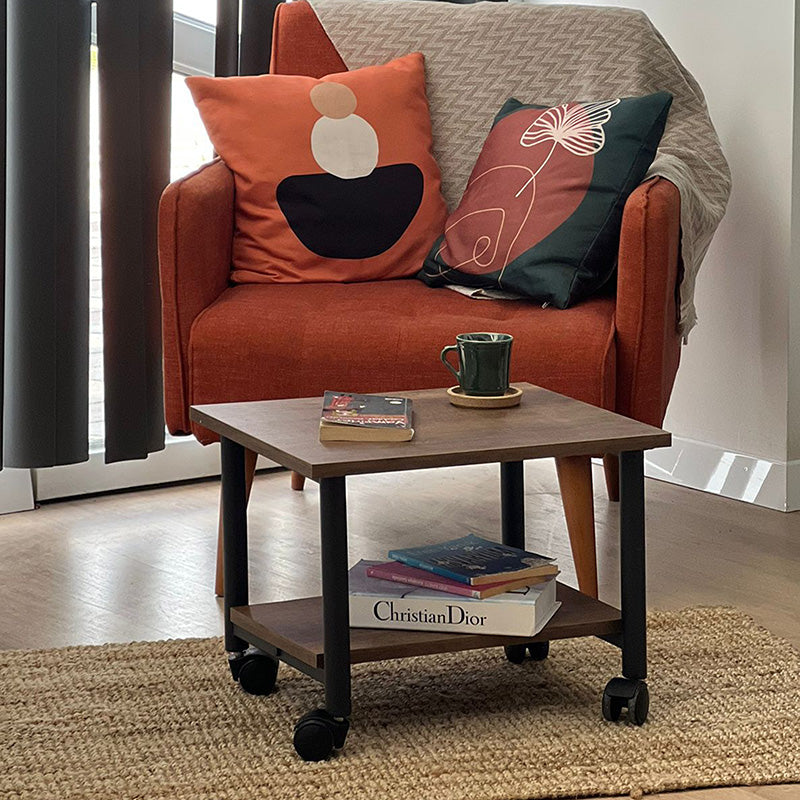 Coffee table Dolly pakoworld on wheels walnut-black 48x40x36cm