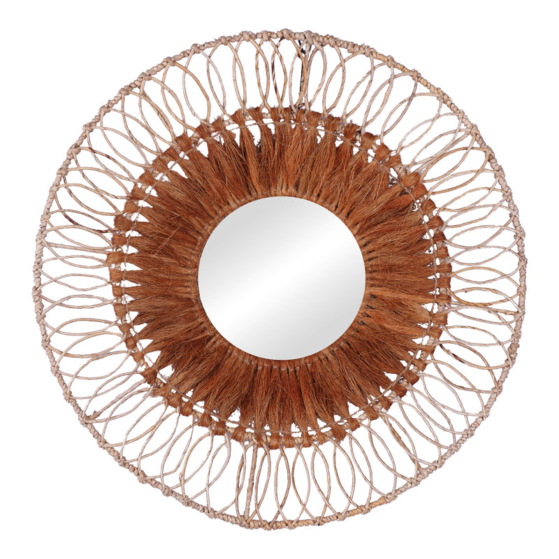 Огледалото Cermine е изключителна комбинация от природна естетика и съвременен дизайн. Изработено от естествен ратан, то придава топлина и уют на всяко пространство, докато уникалният му дизайн създава впечатляващ визуален ефект. Естественият цвят на ратана го прави изключително универсално, подходящо за различни стилове декор, от бохо до модерен.