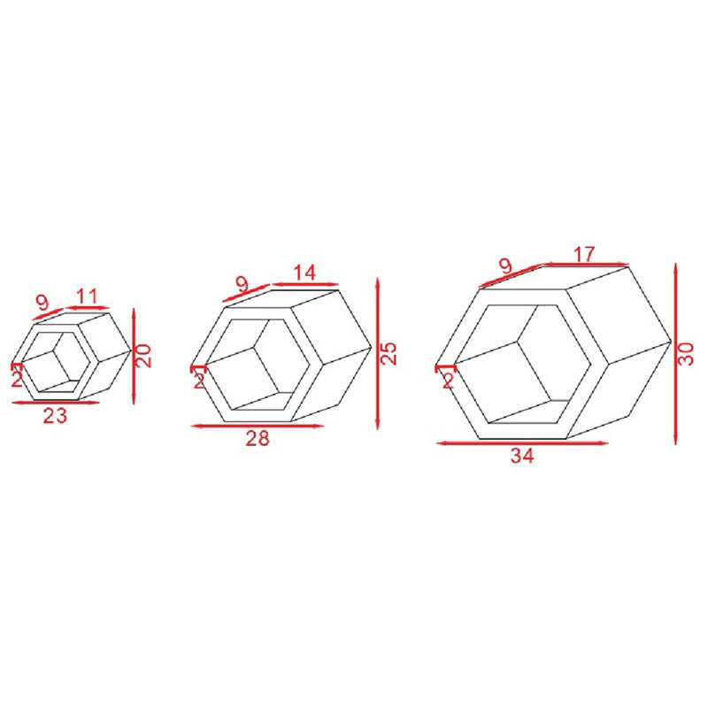 Wall shelf of three polygonal shelves with innovative design. An easy-to-use piece of furniture for any area of the home or office.