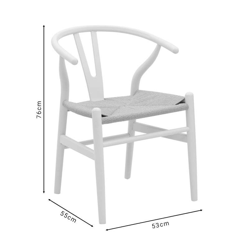 Wishbone chair pakoworld white beech wood-seat with rope in natural shade 53x55x76cm